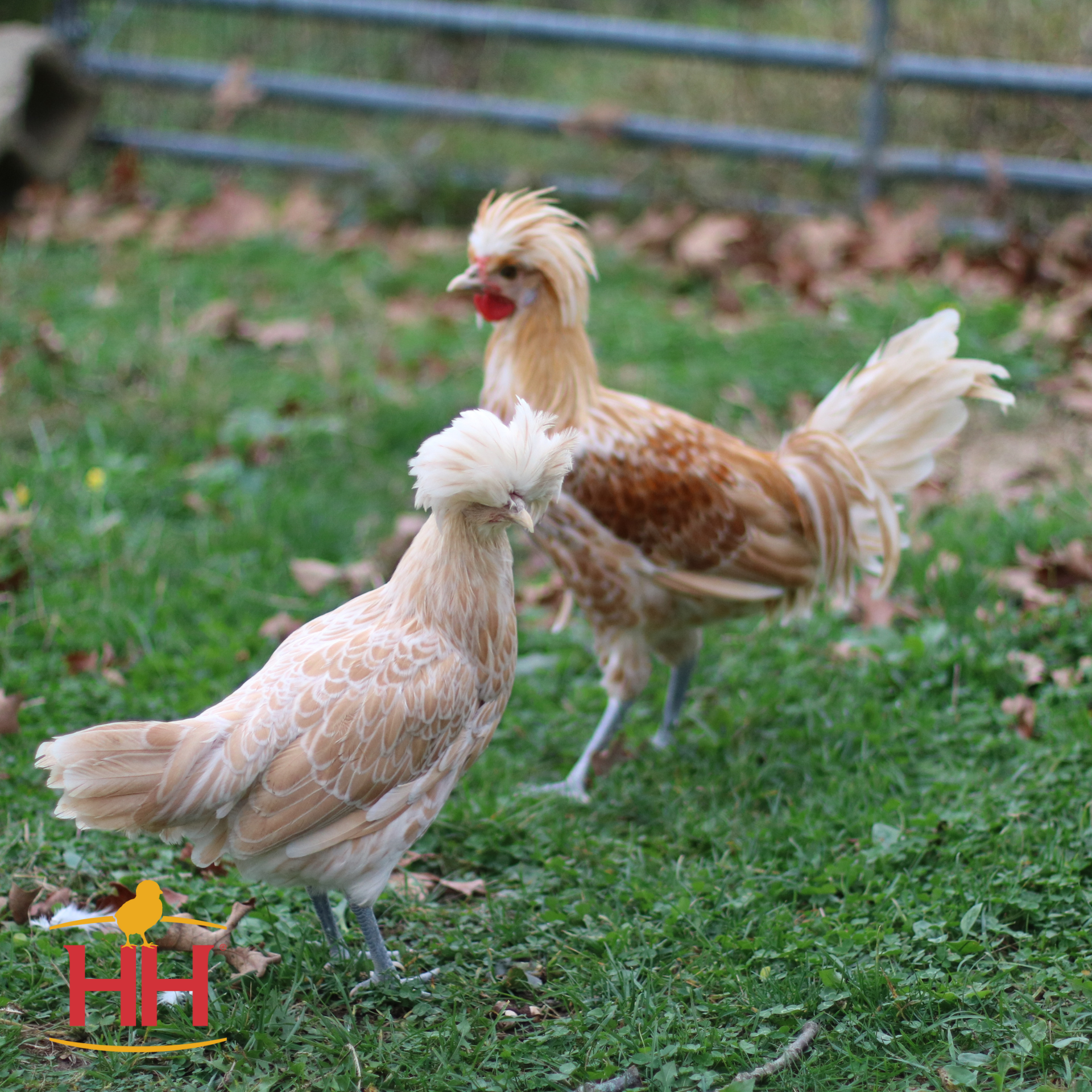 The Polish breed is named for the Polish army's feathered caps because they resembled their feathered crests. The chickens originated in Spain and then brought to Holland, where the Dutch perfected their coloring. They became a popular bird in France, then started appearing in the U.S. around the 1830s. They are a great breed, very docile, and even tempered. They are easily surprised due to their feathers limiting their eyesight, making them vulnerable to predators. Purpose: Ornamental Production: 100 Small White Eggs/Year Temperament: Gentle, Active Mature Weight: 4-5 lbs. Hardiness: Heat Hardy But Not Cold Hardy Broodiness: Rarely Comb Type: V comb