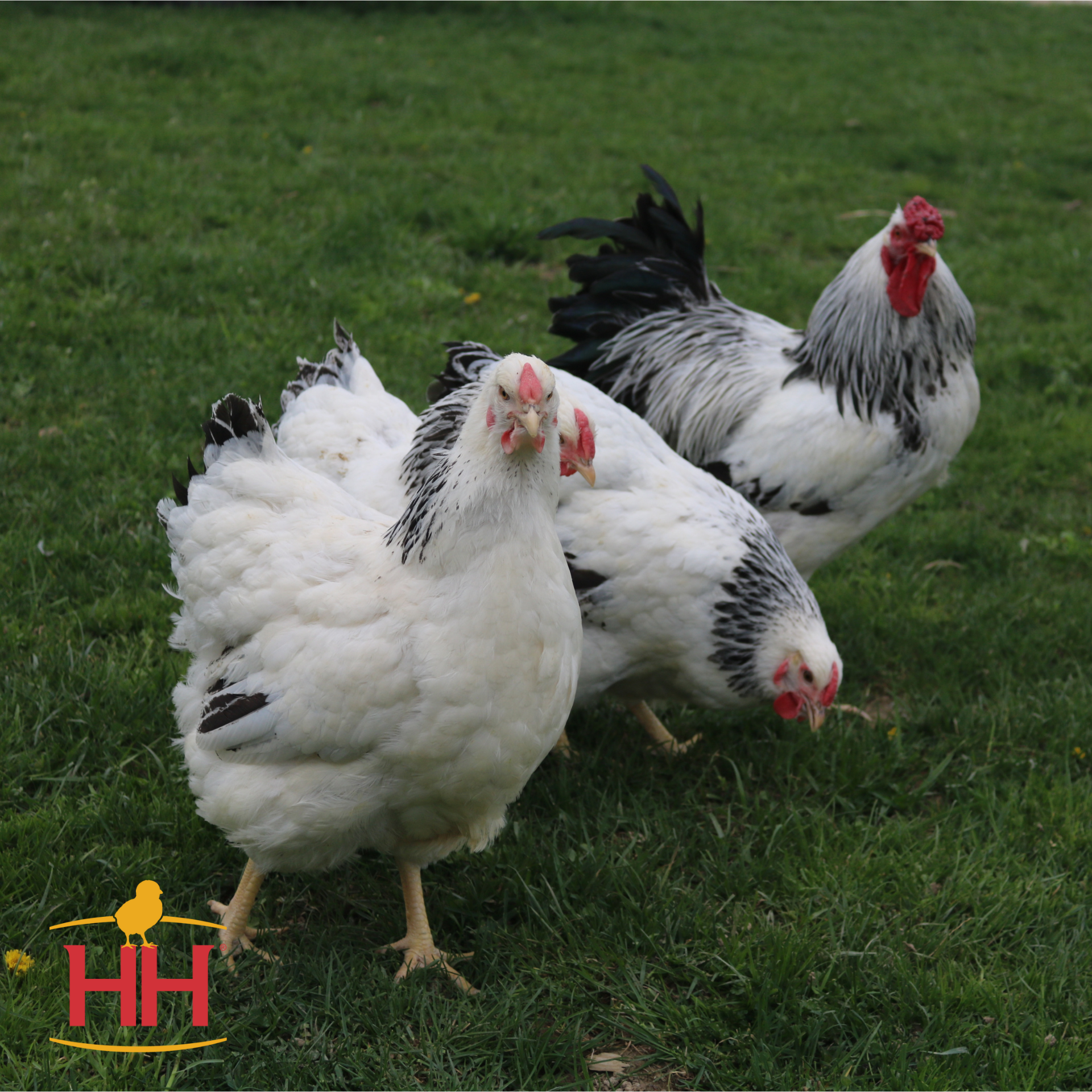 These Columbian Wyandottes are not all show with their elegantly patterned feathers, they make great egg layers too! Wyandottes are one of the most strikingly beautiful chickens to grace a backyard flock. They were developed in New York, have a quiet temperament, and are one of the most winter-hardy breeds. Purpose: Dual-Purpose Production: 200 Medium Cream Eggs/Year Temperament: Docile, Calm, Easy Going Mature Weight: 5-7 lbs. Hardiness: Cold and Heat Hardy Broodiness: Good Mother Comb Type: Rose Comb