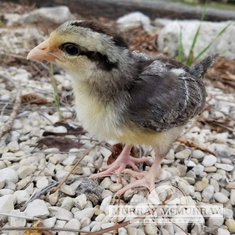 We carry the Silver Gray Dorkings. Males are a combination of silvery white and black. Females are an ashy gray and white, lay a medium-sized cream egg, and are somewhat likely to set.