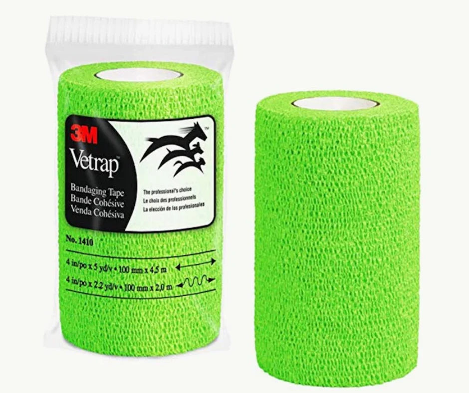 3M™ Vetrap™ bandage tape has been used by animal care professionals for over 40 years. Layers "bond" together to provide support bandages that stay put, allowing better fit and lower risk of slippage. Skin can breathe through cool, lightweight and porous material. This versatile, high-performance bandaging tape has many applications - support, compression and securing of bandages.