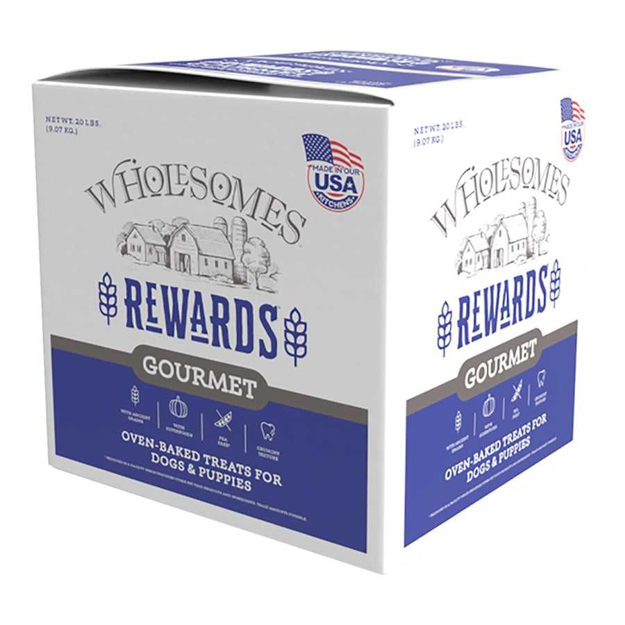 Gourmet Rewards Cheezy Bites have real cheddar cheese baked into every bite, making these a tasty treat or training reward for any dog. The crunchy texture helps control tartar buildup and helps support fresh breath. Each dog biscuit treat is made with high quality chicken protein, ancient grains like oatmeal for heart health, and superfoods like pumpkin and sweet potato to help support a fit lifestyle for your dog. These pea-free crunchy treats are proudly made in family-owned kitchens located right here in the USA.